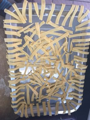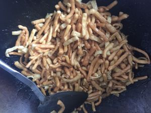 切成小条,锅中倒入油,炸成金黄色。