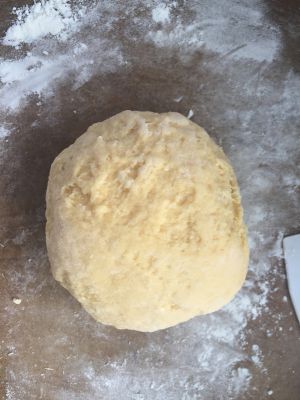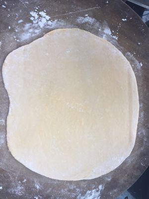 分三块面团,取一块擀成面皮。