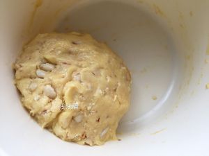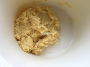 软化好的黄油,加入糖粉,用蛋抽打至略蓬松,鸡蛋打散,加入一半蛋液,打匀。