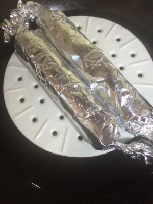 用锡纸把蛋卷包紧,这样蒸出来的蛋卷定型更好,而且口感更嫩。