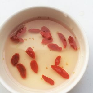 把枸杞摆在鸡蛋卷上,把烧好的汤汁浇在肉末蛋卷上,可以开吃啦,这道菜老人小孩都喜欢吃呢^_^