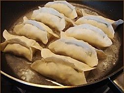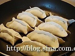 锅中油热后,放入锅贴,中火煎至底面金黄;