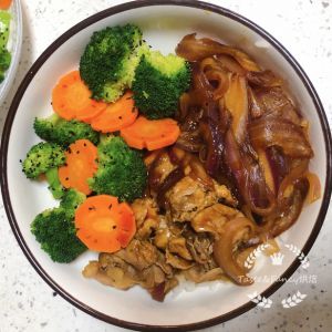 碗底铺适量米饭,将拌好的西兰花、胡萝卜,煮好的牛肉,洋葱分别摆好,将步骤8煮好的汤汁适量淋在摆好的蔬菜牛肉上即可。好吃的肥牛饭做好了,赶快尝试吧!