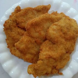 鸡胸肉洗净,对半切开,用刀背给它拍散一下,放盐,料酒,黑胡椒粉,一个蛋清腌制半个小时左右