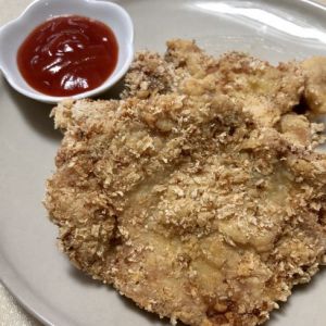 腌制鸡腿肉,我家只有两个鸡腿,所以我把骨头剔了用的鸡腿肉,鸡胸肉也是一样的做法,但是鸡胸肉太厚了,需要从中间对半切成两片。加适量的盐、糖、胡椒粉、姜、葱、牛奶腌制;可以提前一天腌制好放冰箱第二天炸。常温的话早上腌好下午炸也行