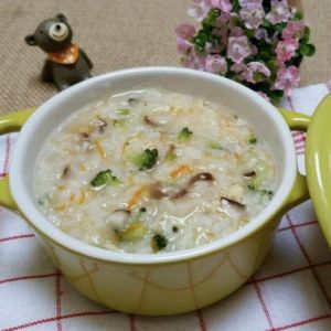 加入鸡胸肉,香菇,胡萝卜,姜丝一起煮10分钟(一边煮一边搅拌)以免糊底^_^