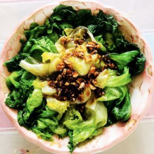起油锅爆香蒜末放入蚝油,糖,生抽炒均匀