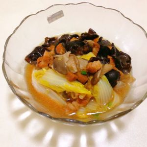 依次加入娃娃菜、木耳蘑菇,加一点点白醋,一勺生抽,翻炒至娃娃菜变软,超出香味