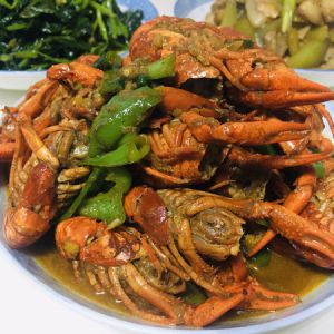 倒入煎炸变色的龙虾翻炒,放入盐、蚝油、糖、醋、生抽等调味,翻炒至入味,加两碗热水,如果不带孩子吃可以不放水,放一瓶啤酒口感更好