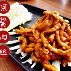 锅中油热(油少许),加入甜面酱炒酱,加入少量葱姜水,酱炒至有粘稠度。