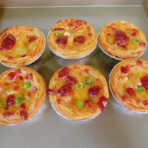 蛋挞皮拿出,无需解冻,刷上一层薄薄的番茄酱