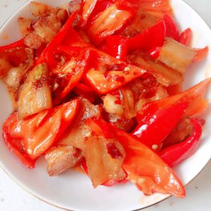 加入红辣椒,翻炒
