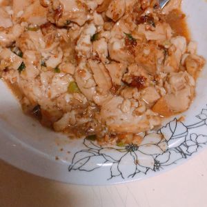 将豆腐中放入生抽蚝油和葱花。还可以再放一点生粉