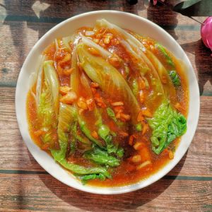 锅中放入水,中火烧至微微开,放入生菜烫10秒