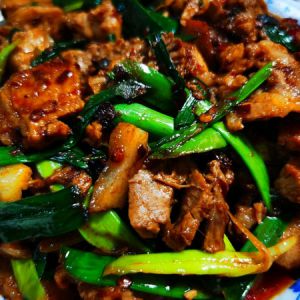 热锅凉油时下入花椒生姜,待油温上升炸出香味后捞出扔掉,接着放入郫县豆瓣酱和老干妈豆豉各一小勺炒出红油底味,再倒入切好的熟肉片略微翻炒均匀期间可根据自己口味加盐或鸡精,最后倒入蒜苗炒十来秒左右就可以装盘上桌,一道美味下饭的回锅肉就完成了。