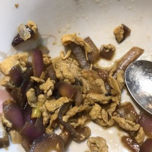 不粘锅加热烧干放油,不用太热,放鸡蛋炒半凝固状态,放入切好洋葱翻炒至熟,加生抽拌匀。不用放盐,生抽是海天。