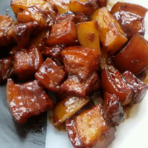 肉软烂后大火收汁 下一点点味精 颠锅装盘