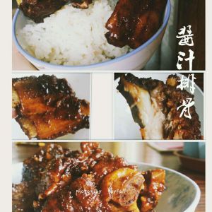 在大概半个小时以后放入糖,盐,鸡精,耗油,接着炖煮。酱汁排骨口味偏甜,所以糖可以多放一些。然后如果排骨已经软了,开始大火收汁,将汤汁收到很少,排骨颜色比较鲜亮。酱汁排骨就完成了。
