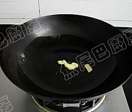 8、热锅下油,油热后放入姜片爆香。