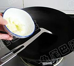 11、锅洗净,再下油,加入拍碎的蒜头和剩余姜片,爆炒。