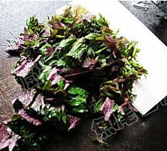 紫苏摘去老叶和梗,洗干净。
