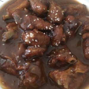 煮好的排骨,汤汁浓稠。这个汤也很好吃哦,最后撒上一点白芝麻!这是祖传的方子,以前农村办酒席奶奶就是这么做糖醋排骨,虽说是糖醋排骨但是奶奶说放醋,这样味道更棒。