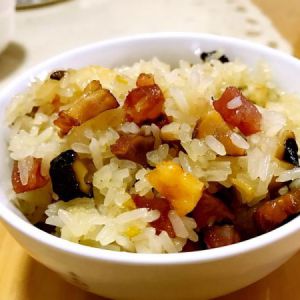 加入蒸好的糯米饭翻炒均匀,加入适量的盐