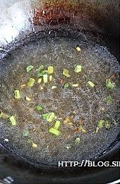 锅中放入适量油,待油温烧热时,放入大料炸出香味,爱吃辣的可以放点辣椒,再加入葱末和姜末爆香