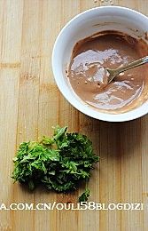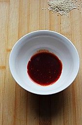 再加入一勺腐乳汁、适量白糖和生抽、辣椒油调匀制成麻酱汁