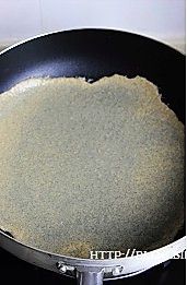 舀一勺面糊,摊开,做成薄薄的煎饼