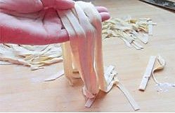 面粉、盐、鸡蛋放入盆中,加桅子水,和成面团,醒15分钟