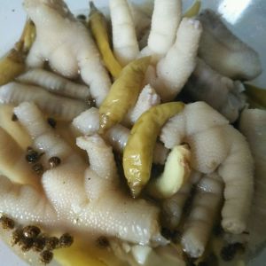 10分钟够,将鸡爪捞起立刻放入冰水中,这样鸡爪的表面能够很快的收缩,变得爽脆有嚼劲,然后准备另外一个大盆子,倒上白醋,糖,十三香,盐,泡椒,花椒,将鸡爪浸泡进去,然后放进冰箱一晚上,要吃的话直接放碗里就可以啦。