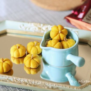 把南瓜面团分成16个左右的小面团,揉成光滑的小圆球