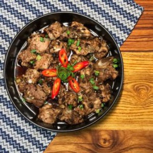 排骨洗净剁成小块,豆豉用水冲洗一下切碎.葱取葱白切末,姜蒜切末备用.