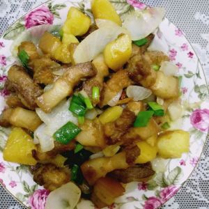 大火煎略焦,加入冰糖、酱油、少许料酒、味素、盐,翻炒下,加水炖开!