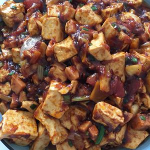 加油烧热后加入一勺郫县豆瓣(不吃辣的可以不加),加入之前已经切好的火腿,番茄,芹菜,翻炒一分钟后加水,放入豆腐,水没过豆腐即可,大火烧开,转中火,