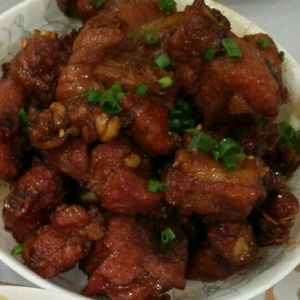 待锅烧热后倒入适量的油后迅速放入30g冰糖,记住一定要是热锅冷油炒糖色,不停的翻炒冰糖直至变色冒泡就可以倒入排骨上色了。