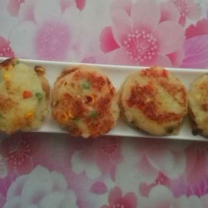 平底锅刷一层油,取一块土豆混合物压扁,下锅,煎至两面金黄即可!(怕粘手的话,手掌沾冷水)