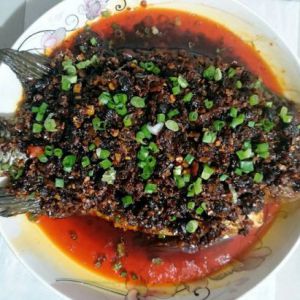 将煸炒好的料均匀铺至鱼上,上锅蒸至15-20分钟,撒上葱花即可