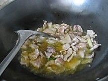 锅里烧热油,把姜片倒进去炒香,然后把肉倒进锅里翻炒至白色