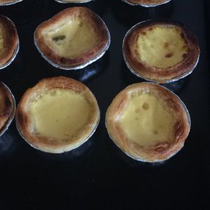 放葡萄干在挞皮里,倒入蛋挞液,预热烤箱15分钟,然后蛋挞入烤箱180度中下层20分钟