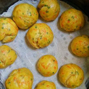 胡萝卜削丝,葱切碎.把所有的材料都放到盆里柔好。醒10种