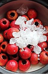去掉核,去核的方法有很多,你可以把山楂切开去掉核,若是为了保持完整性,那就去找一个钢笔帽吧,看到钢笔帽后你就知道该怎么用了