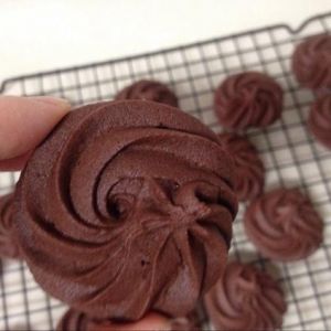 在烤盘上挤出曲奇花纹。我用的28*28的不沾烤盘,一共两盘。