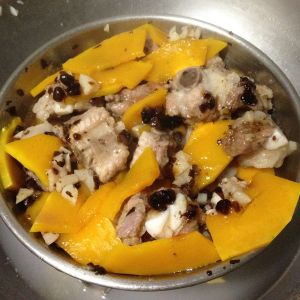 蒜头、豆鼓切碎,与排骨和以上辅料一起搅拌均匀,等待二十分钟左右(这里是三人的份量噢)