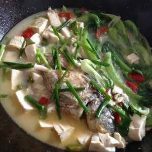 煮至汤汁变成乳白色,下生菜煮一两分钟。出锅时放点葱段。