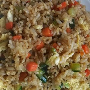 上述食材炒八分熟,放入拌好的米饭,接着炒,炒熟后,放些盐,再将炒好的鸡蛋倒入锅内,翻匀,香喷喷的酱油炒饭就可以出锅了。