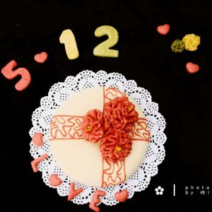 白色面团擀薄,大约厚1cm 左右,修整成圆形