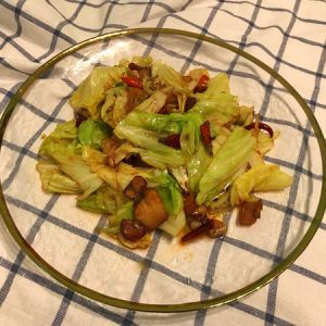 加入圆白菜翻炒,加入生抽,盐,鸡精,白糖少许翻炒出锅