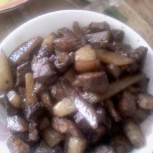 酱油翻炒均匀加入水没好过猪肉,盖上锅盖烧